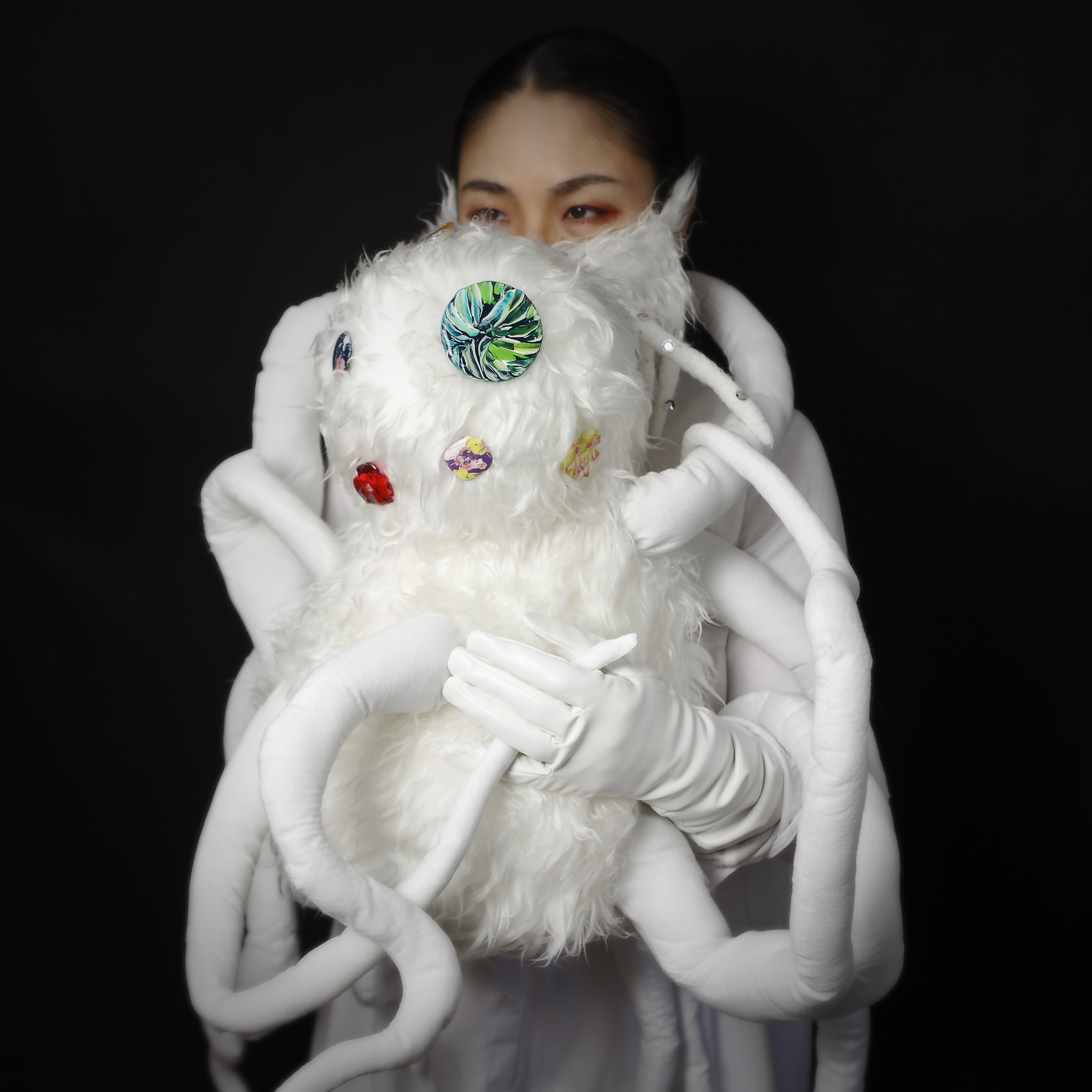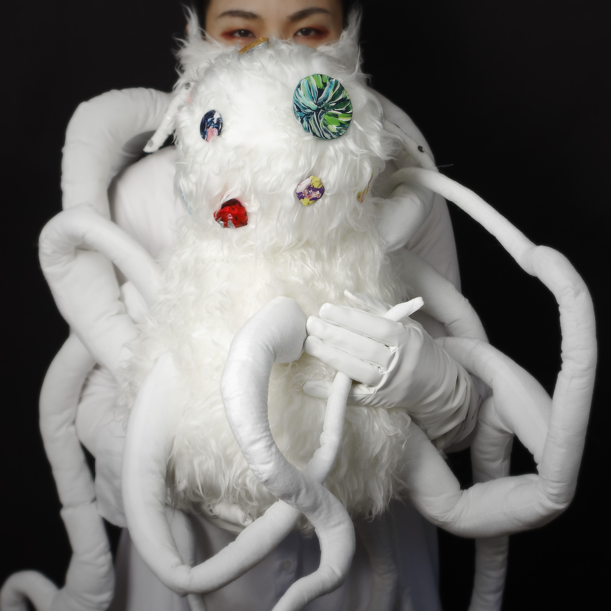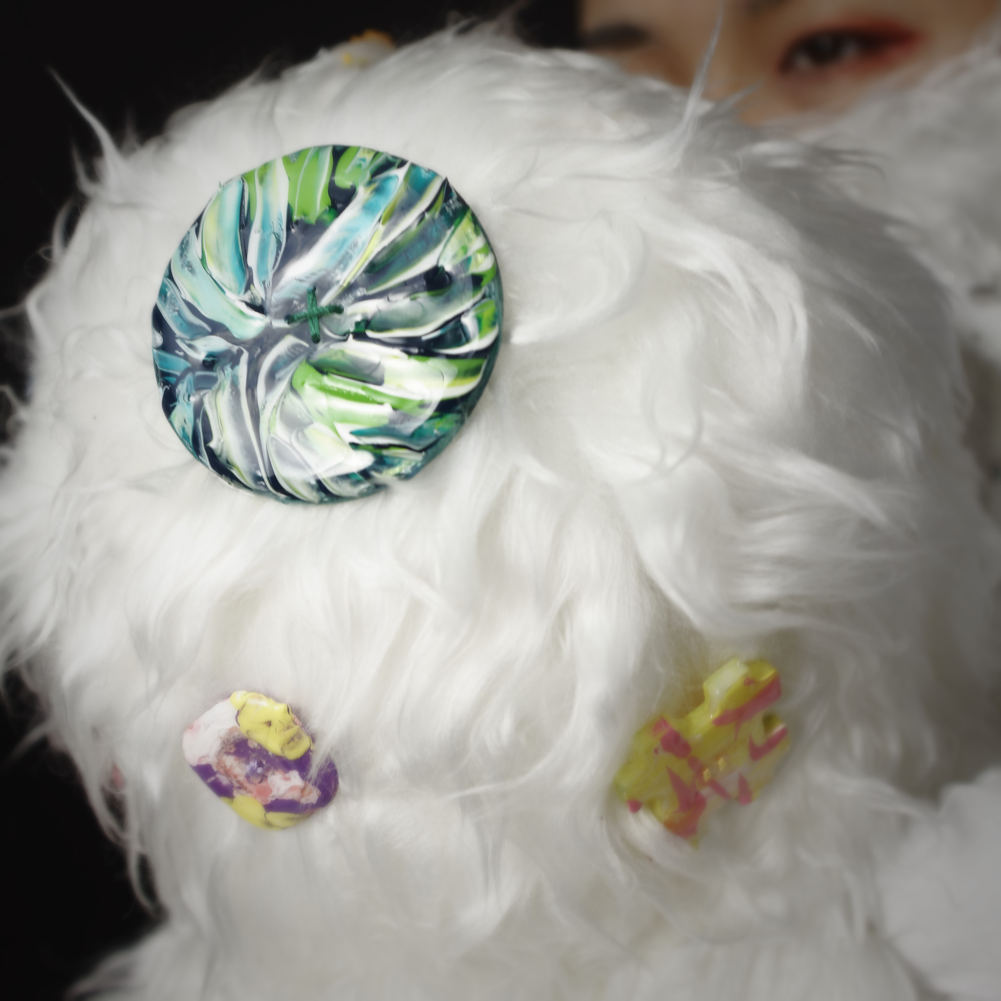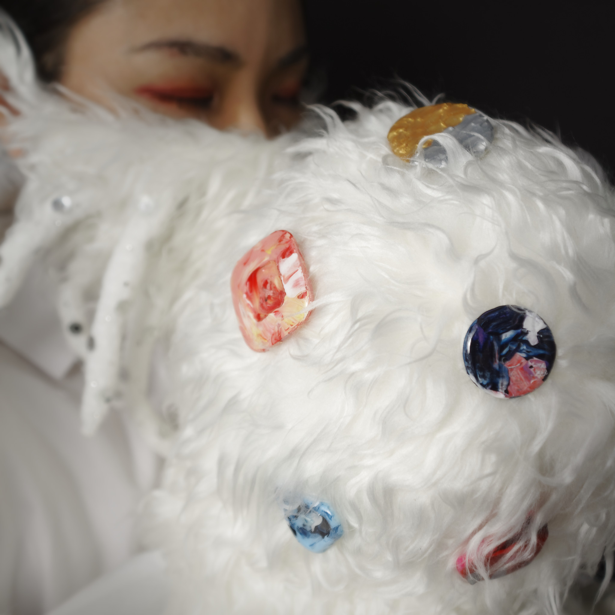 faux fur, sheeting, polyester cotton, sewing thread, acrylic paint, abs resin, clear resin
